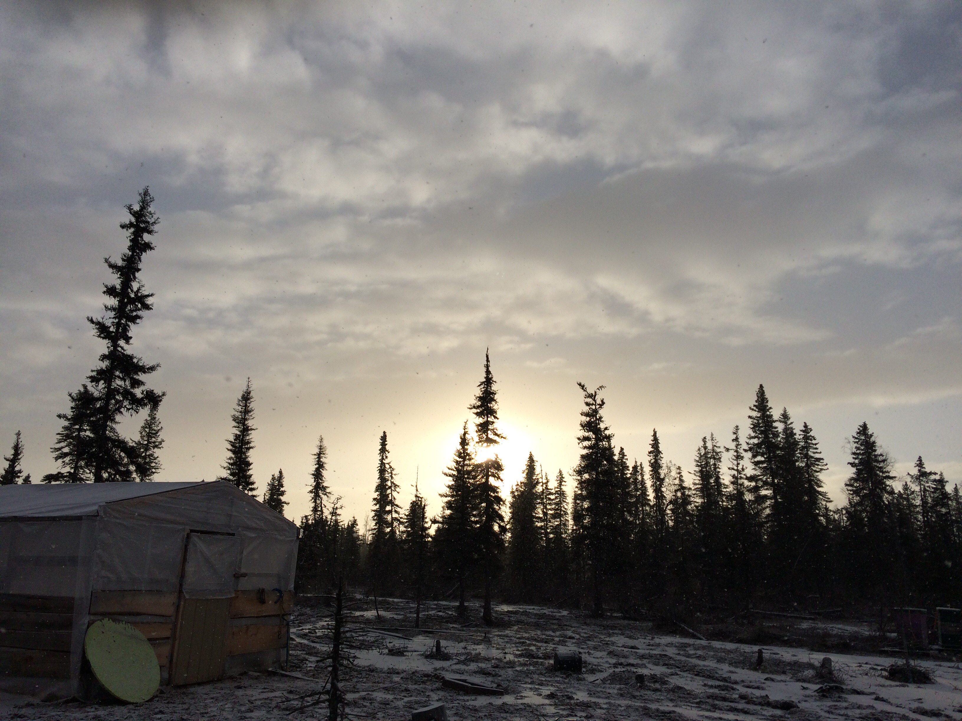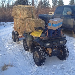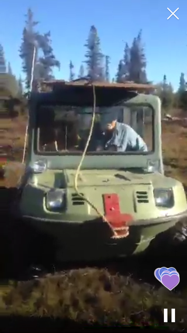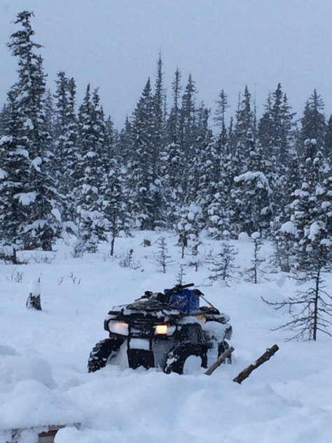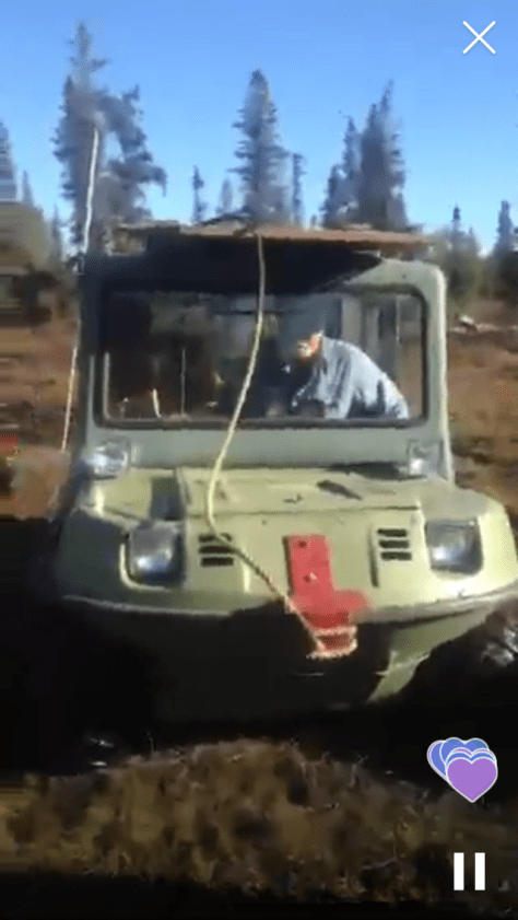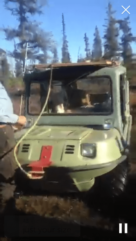 Last night just before 9 pm I got a call from the state troopers. They had a Moose available and did I want it? Yes! Of course I wanted it so I got the directions and called our dear friends Dan and Robin to ask if they could “claim” it for us as we would not meet the 30 minute window to arrive on scene. Dan of course was out the door and gone before I could say thank you. Dear hubby, Cati and I loaded the tools needed to Field dress a Moose and in the Argo we went to head to the road. All was going well until we reached the bridge to cross the creek. Ah oh, only half a bridge left. Dear hubby gets out and looks over the situation and like our brains do on many occasions we both got a great idea, the creek narrows just above there and there’s fallen logs so why not “jump” over there? Okay realistically my mind Was thinking “lack of a safe crossing will not stop me from hundreds of pounds of meat” so with a whoosh of my mom cape, the crunch of the willows I must drive through and the sounds of the meat grinder dancing through my head I attempted to cross the minor abyss standing between me and meat. Like a boss the little green giant navigated through the rough crossing and we were off.