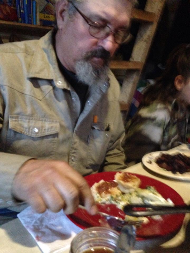 Today was a very busy day!  My day started out at 4 a.m. which is really early considering the sun doesn’t rise until 9:44 in the morning but with the coffee pot perking at full speed I conquered my sleepy eyes and persevered!  Some of you know I was contacted by A Taste of Home magazine and they had chosen one of my recipes for their cookbook to be published in August.  Now I am not quite sure how they got this recipe as I don’t recall submitting but never the less I was honored to even be considered.  The requested that I submit photos of myself and my family enjoying the veggie breakfast casserole and I responded (a bit saddened at the prospect it would be a deal breaker) that I would be happy to submit photos of my family but would not inlcude any of myself that could be blownup clear enough to see as I still feel hideous after the accident that broke my facial bones, took my teeth and left me looking 20 years older than I am.  To my amazement I received another email stating they understood and to just include photos of my family! Yay  happy day!!!!!!!!! Yes I am proud to show off my family!  So my day began with converting my crock pot recipe to a casserole recipe, getting hat in the oven, realizing I needed to bake biscuits because truly breakfast would not be complete without fresh biscuits and homemade spiced peach preserves, waking kids up to get chores done, scrambling between chores and the oven (yes visions of burning the entire thing crossed my mind 200 times a minute), getting little girls hair brushed all three kids faces washed, checking goats to see if any were going to kid during the next hour I was attempting to get photos of the prepared recipe and convince both Mike and Fred that it is entirely possible to smile BEFORE the first pot of coffee and sunrise hits!  Well we made it and completed the photos so they can be sent before the deadline!!!!!blessingbook breakfastbook1 breakfastbook2 mikebook IMG_2300