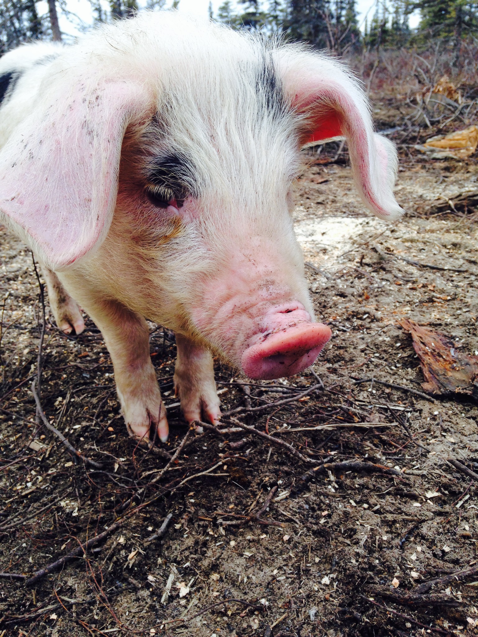 Roofing on my anniversary and not a bit unhappy about it. Happy to say the framing is done and all but 4 sheets of the OSB are on the roof. Not many mishaps either! Praise God for keeping us all safe! What would a day here be like without something odd happening? Well today held true for the animal antics. While we were all on the roof we hear miss Charlotte our little miss piggy squealing,grunting (happy pig sounds) and a strange hissing sound. Whenever there’s odd sounds and pigs involved it becomes a priority to investigate-no really it’s a “right now” kind of thing. So down the ladder around the cabin I fly (no cape on just winging it) and find Miss Charlotte covered in pink foam and all the other little piggies in a frenzy to get what she has in her mouth. Still it’s not registering what she has or what that sound is until one of my 2 legged kids yell “she got into our pop”. We discovered that pigs can have such fun with a can or three of Shasta Tiki Punch Soda and it’s obviously the flavor choice because they left the grape and lemon lime alone. It was a site to see but after laughing the mom in me suddenly fears sharp edges and decides they must give up the cans. Alright the mind said that but the body had no clue what it was in for. In the mud wrestling a pig-remove the can game about the time I get my feet under me another pig sneaks between my legs grabs the can and we now have an official keep away game going that would rival any school yard bullying session! I finally came out victorious and I really do think I deserve a medal after all it was 4 against one! Cans disposed of piggies checked over for any cuts I now decide a time out aka coffee break is much needed. Sitting drinking a cup of coffee, still giggling at the previous antics my 3 2 legged kids come in and announce to me I am no longer super mom. What? Did you not see what I just went through? Smiling they dubbed me “the cape bruise-aider”! Yes I am blessed beyond measure. Sweet dreams to all and may God Bless you.