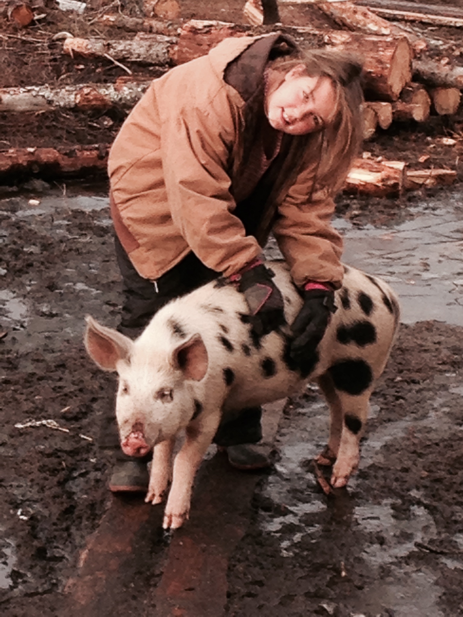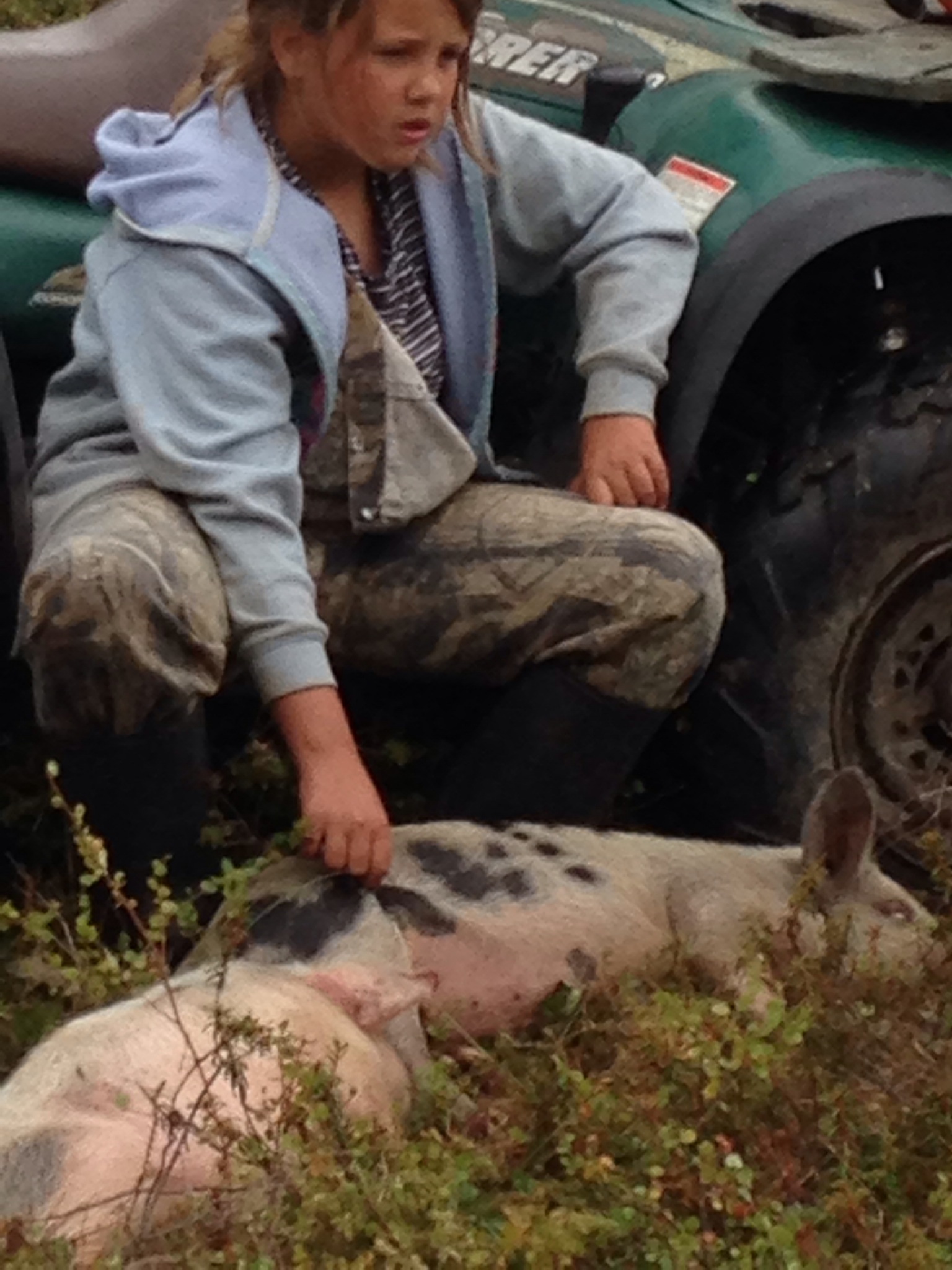 The guys had a good time today with the females all gone, they hauled water, cut wood and watched the pig antics. Pigs that are supposed to be such smart creatures sometimes do the silliest things. Today Sir Hammington being the nosey creature he is decides sniffing the shovel that is leaning against the electric fence-would be a grand idea. He of course gets shocked and does a flip, squeals and runs off. Charlotte who is standing there witnessing this and who herself is well versed in electric fences then decides that maybe she should see if it really does shock and repeats the same silly moves. I guess the smart pig theory has just been proven wrong.