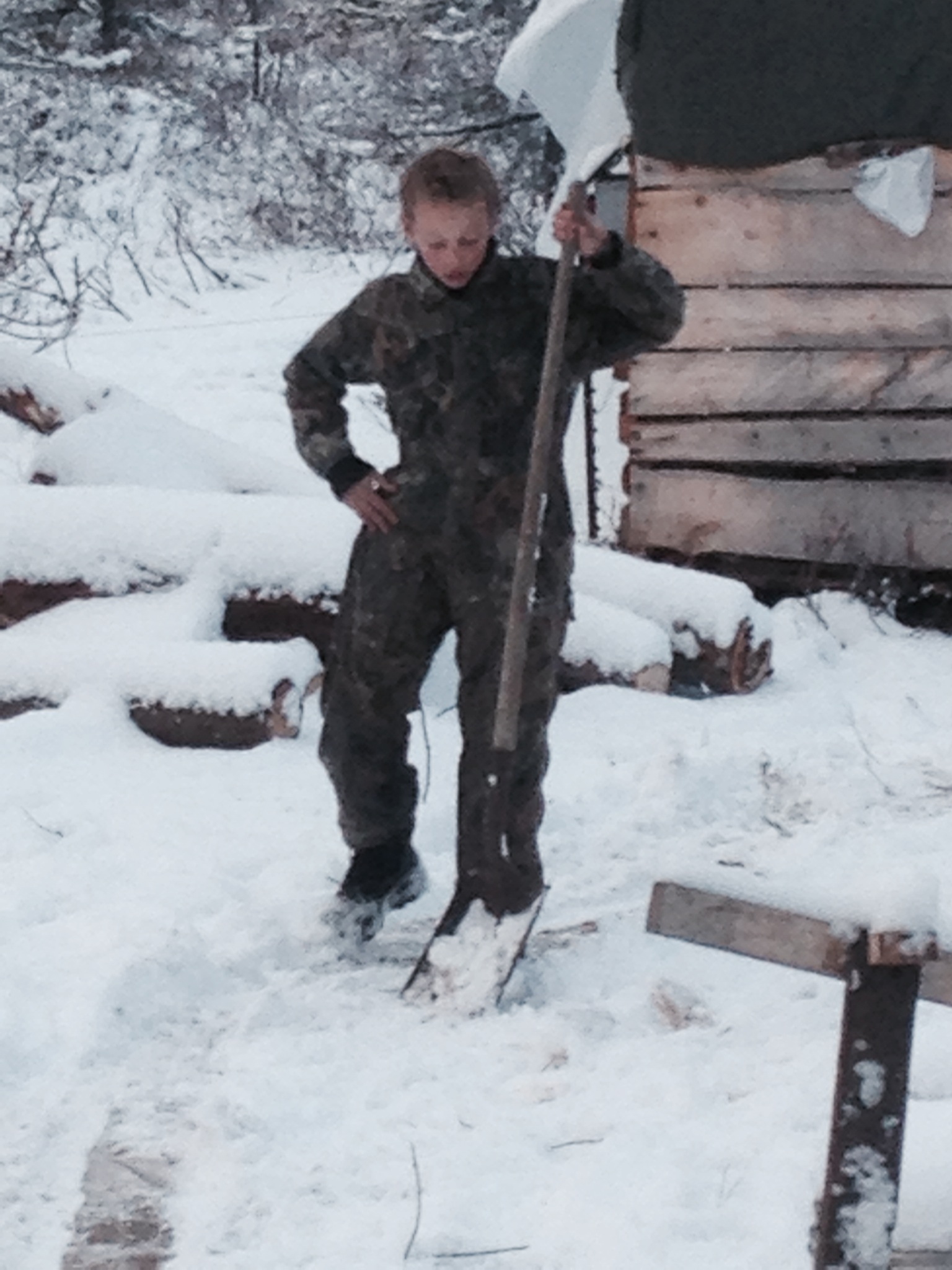 What a beautiful day it was today. The weatherman was wrong….again…..but it was beautiful! Snow was falling on our trip out and I felt like I was in the middle of a Norman Rockwell painting it was so beautiful. I took a minute to capture a couple of pics once we were to the truck and driving the 3/4 of a mile to the road. I hope you enjoy them as much as I do.