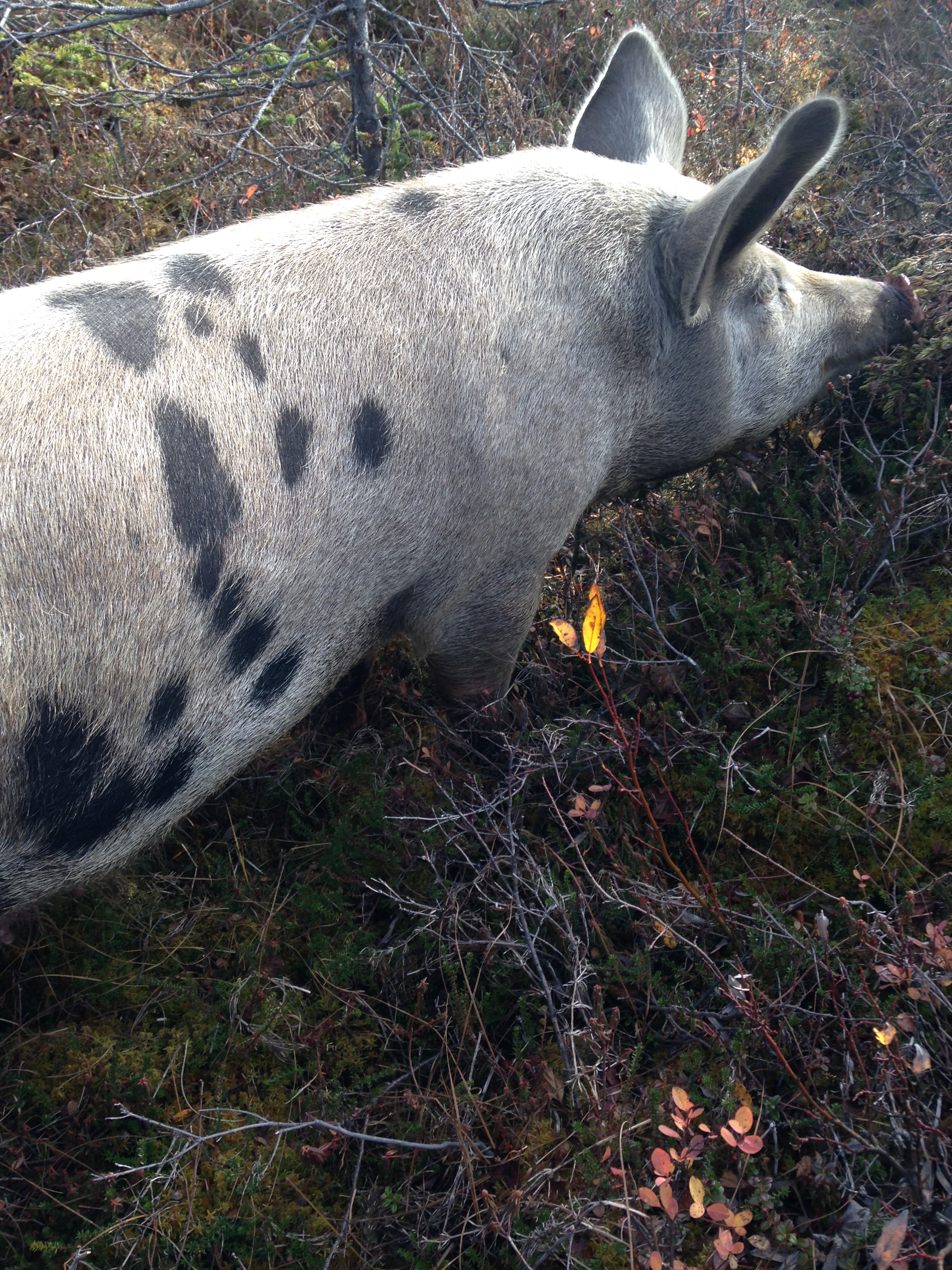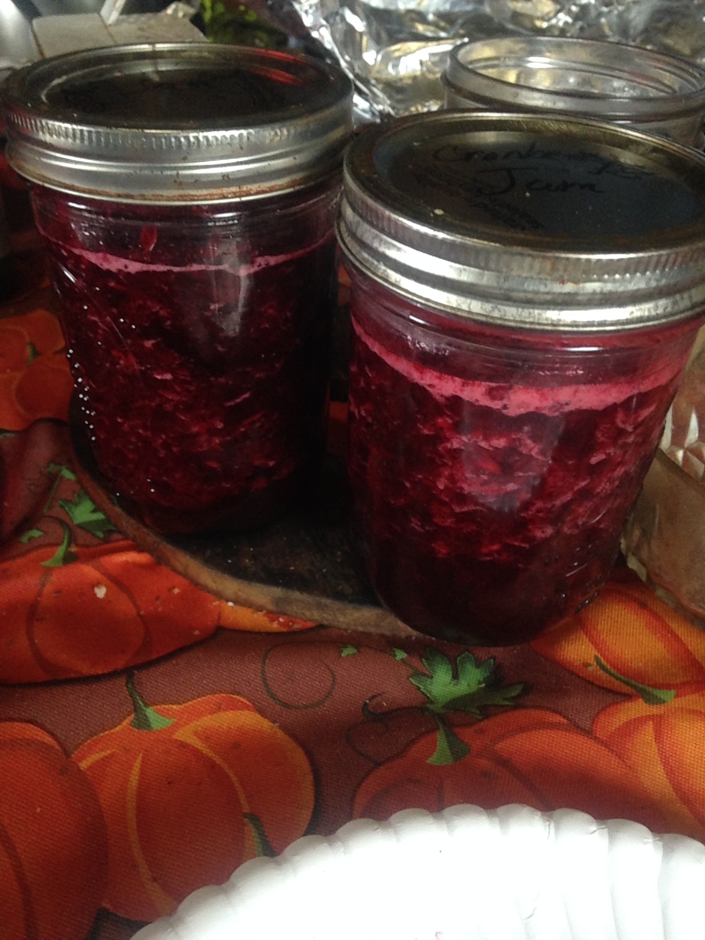 I hope this gives you an idea of what its like to live our life out here.  Now lets talk about my day!  We had cranberries that we had accumulated while out checking goats so I cooked them up early this morning and while getting kids going on schoolwork ran them through the food mill and made cranberry sauce and not one to waste used all the skins and made cranberry jam.  Oh it tasted so good and I got the bright idea to run out and pick more while doing my critter checks.  Now if you have ever picked berries with an entourage of goats, pigs and turkeys then you just have not lived!  It goes something like this-Spot a clump of berries and bend over to pick just about grab them when a turkey sees the bright color dives in to grab them and the pig (Miss Charlotte) thinking I am being attacked by a turkey jumps at the turkey and her bulk hits me.I am now on the ground checking to see if my bucket is upright and trying to find footing to get up.   Oh did I mention it is extremely wet out and there are holes 2 foot deep with water in them covered by grass so you don’t know the are there until you step in one?  Of course the goats who are casually taking this in see the bucket is not my main concern and take the opportunity to sample the sour berries-not liking them they can’t take their fellow goats word for it one by one they all have to have a go!  Meanwhile I am still on the ground being guarded by a 400 pound pig who decides since I am down there I might as well give her a belly scratch-seriously Charlotte?  Well I finally get upright and realize the time has gotten away from me so I hurry back to the cabin but Frankie being Frankie fell asleep in the woods and didn’t come in with the rest of us so to shut up his constant mmmaaaaaaaing which is like calling to a bear and saying “hey dude, lunch is over here” I go back out to where we were and retrieve him.  Of course not knowing if where I am going and what I am doing may or may not involve treats, my entourage follows.  I eventually made it home and called the kids out to assist me with catching up with the things we needed to get done and went in to my sweet Cati making us a late dinner of grilled cheese and soup.