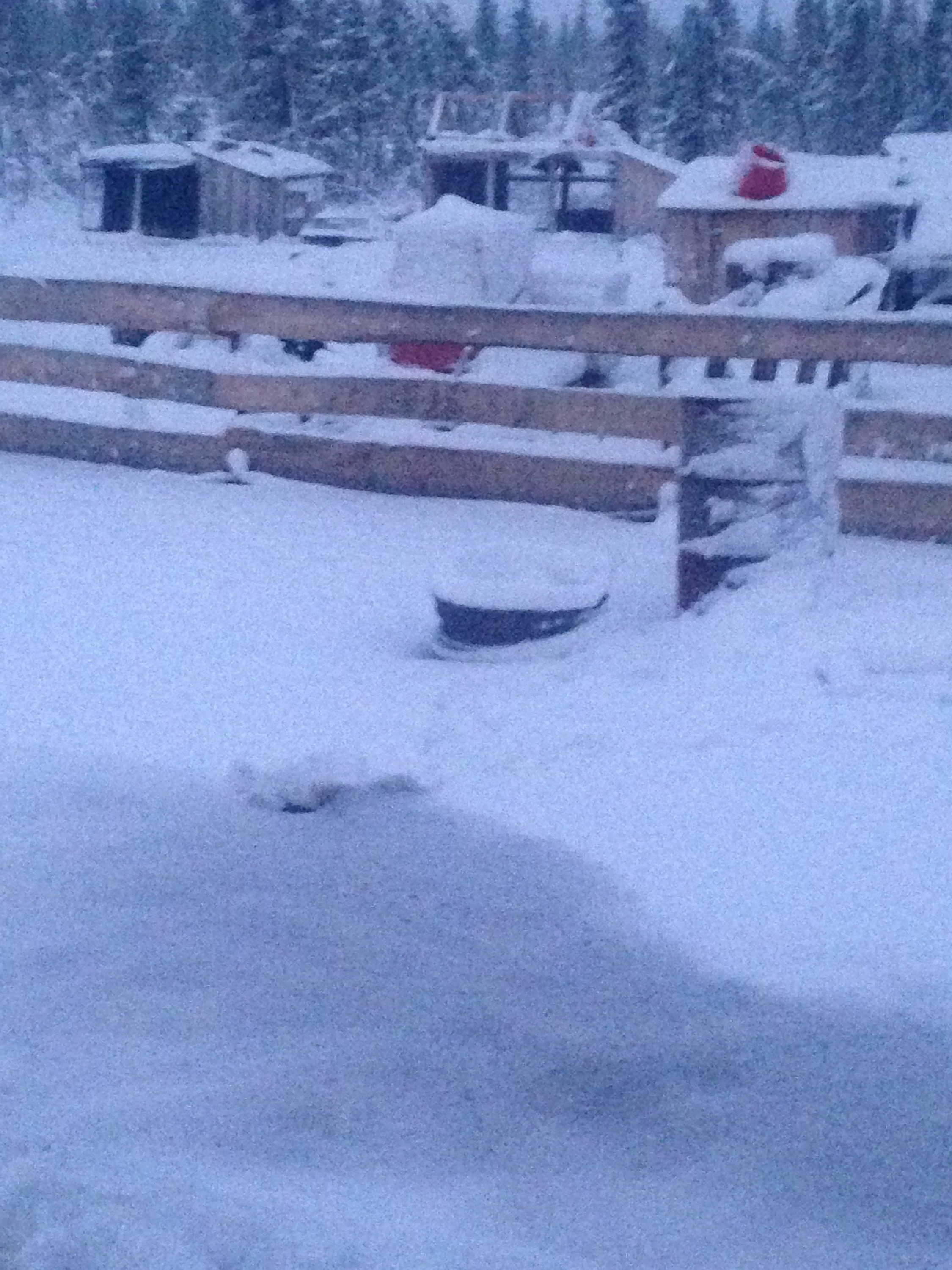 The snow fall we recieved has made the simple task of walking through the yard treacherous as it is still wet and mushy underneath. I found myself stuck yesterday while making my rounds and had to be rescued by dear hubby and son. I stepped in a spot and sunk to the tops on my knee high boots! It was like quick sand-really Quick quicksand! They made their way to me and pulled me out but not before chuckling at my predicament.